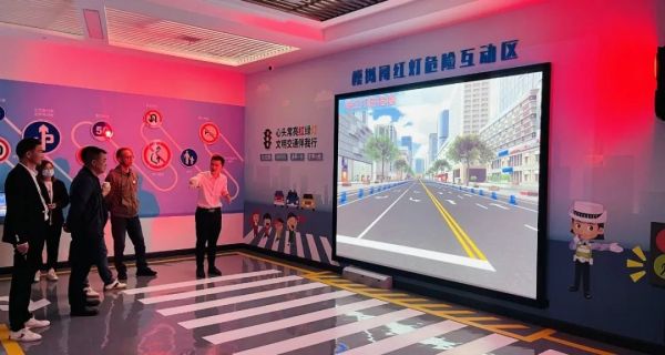 模擬闖紅燈危險互動區(qū)設(shè)置了真實(shí)的信號燈,當(dāng)信號燈為綠色時,參觀者可以正常通行,但當(dāng)信號燈為紅色時,系統(tǒng)檢測到有行人通過時,畫面將呈現(xiàn)慘烈碰撞場景并伴有車輛緊急剎車聲效,讓參觀者切身體驗(yàn)到闖紅燈的危害,特別對于當(dāng)前的手機(jī)低頭一族,大家需時刻保持文明交通安全的觀念。
